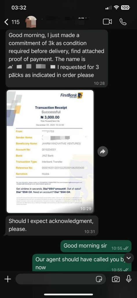 For other states… You have to pay a commitment fee(#3,000) before it can be sent. if you are not ready to do that, kindly cancel your order.